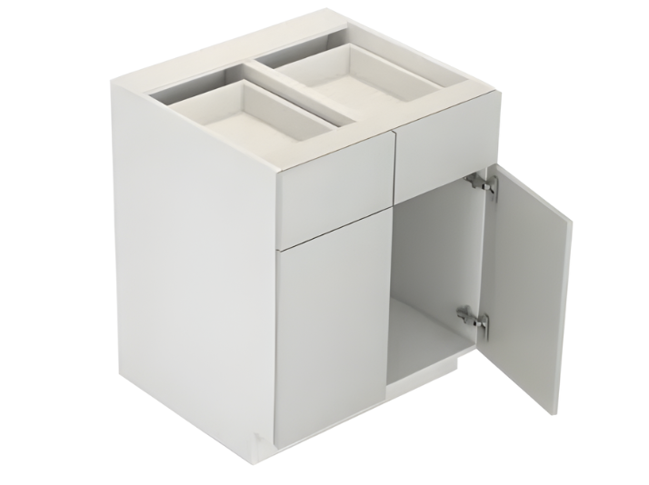 Kitchen Cabinet B30 Base Cabinet, 2 Doors, 1 Adj Shelf, 2 Drawers Dimension (Inch): W = 30, H = 34,5, D = 24 Dimension (mm): W = 762, H = 876,3, D = 609,6 Catalogue Kitchen Cabinet V-SB27